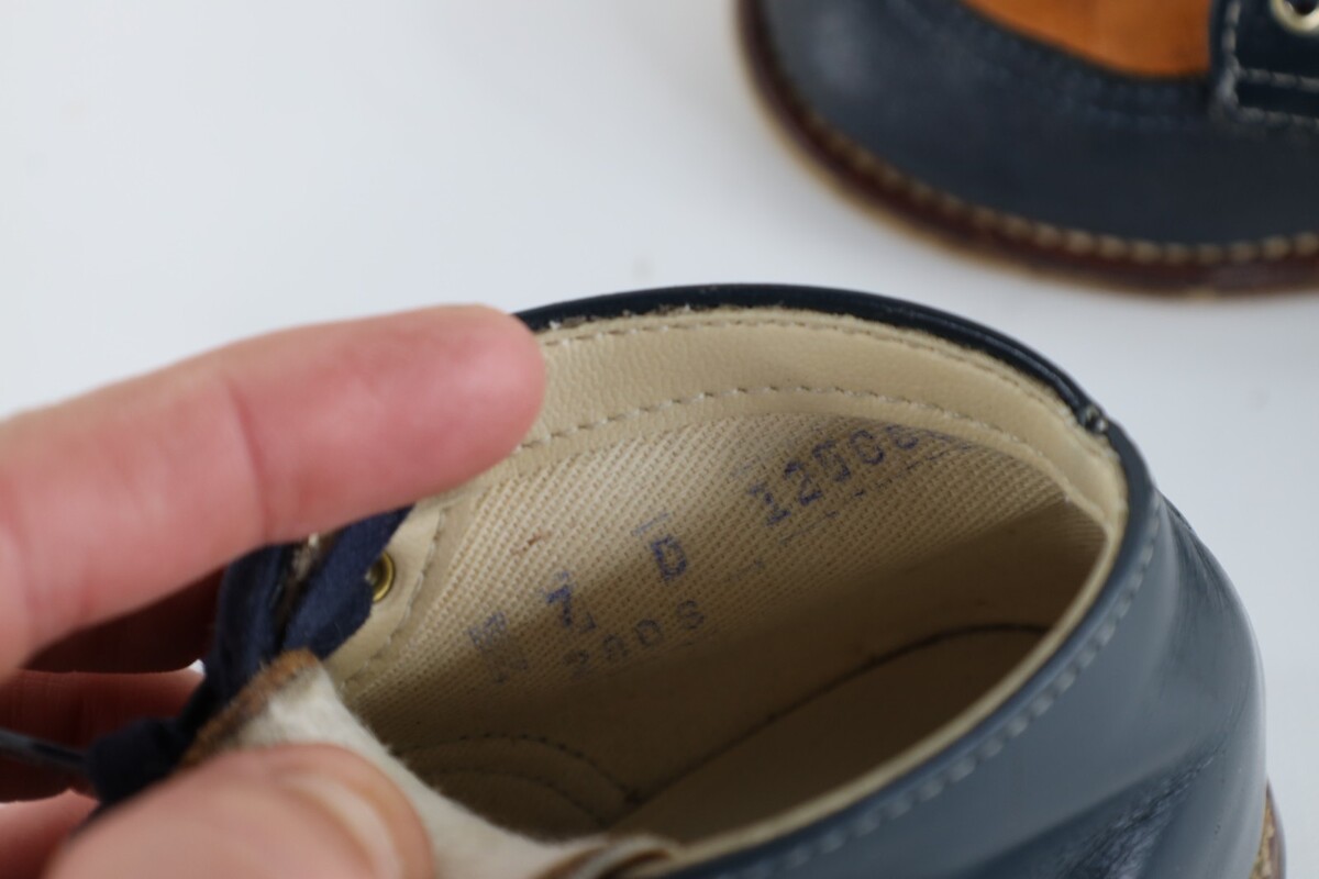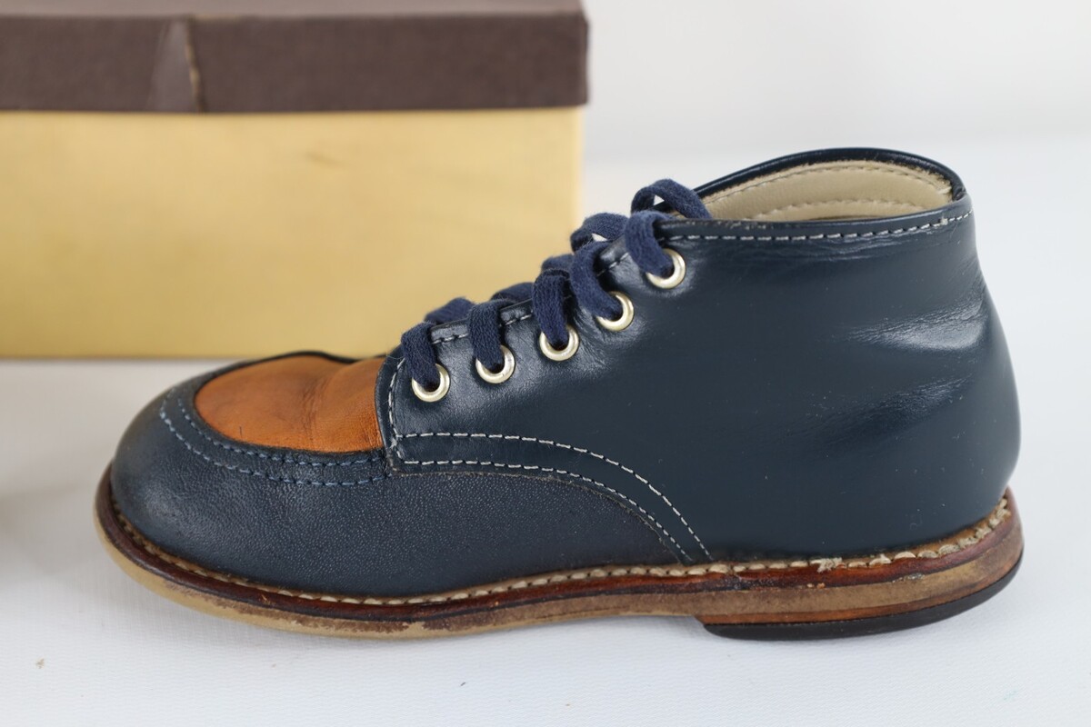 - Vtg 70s 80s Toddler Child Size 7 C Distressed Leather Chukkas Boots Navy Blue