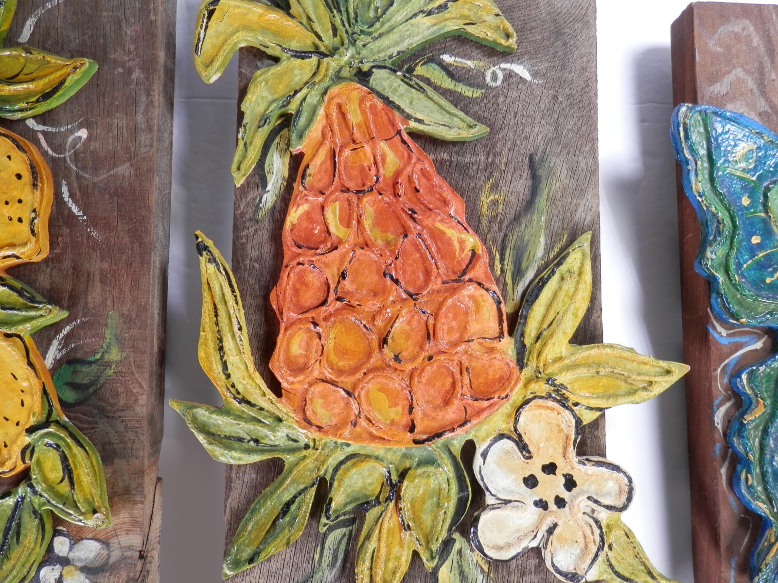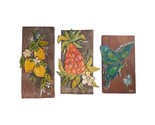 Vtg 70s Hand Painted Wood Wall Art Lemons Pineapple Butterfly Retro Kitsch Art