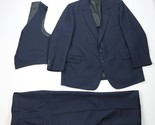 Jacket: Stains front, collar. Collar, inner lining discolored.Vest: 23x25 Stains, loose threads back. Pants: Holes, mended holes, pilling crotch area. Blemishes throughout. Inner lining discolored. Color faded. Made in USA. Inseam hemmed