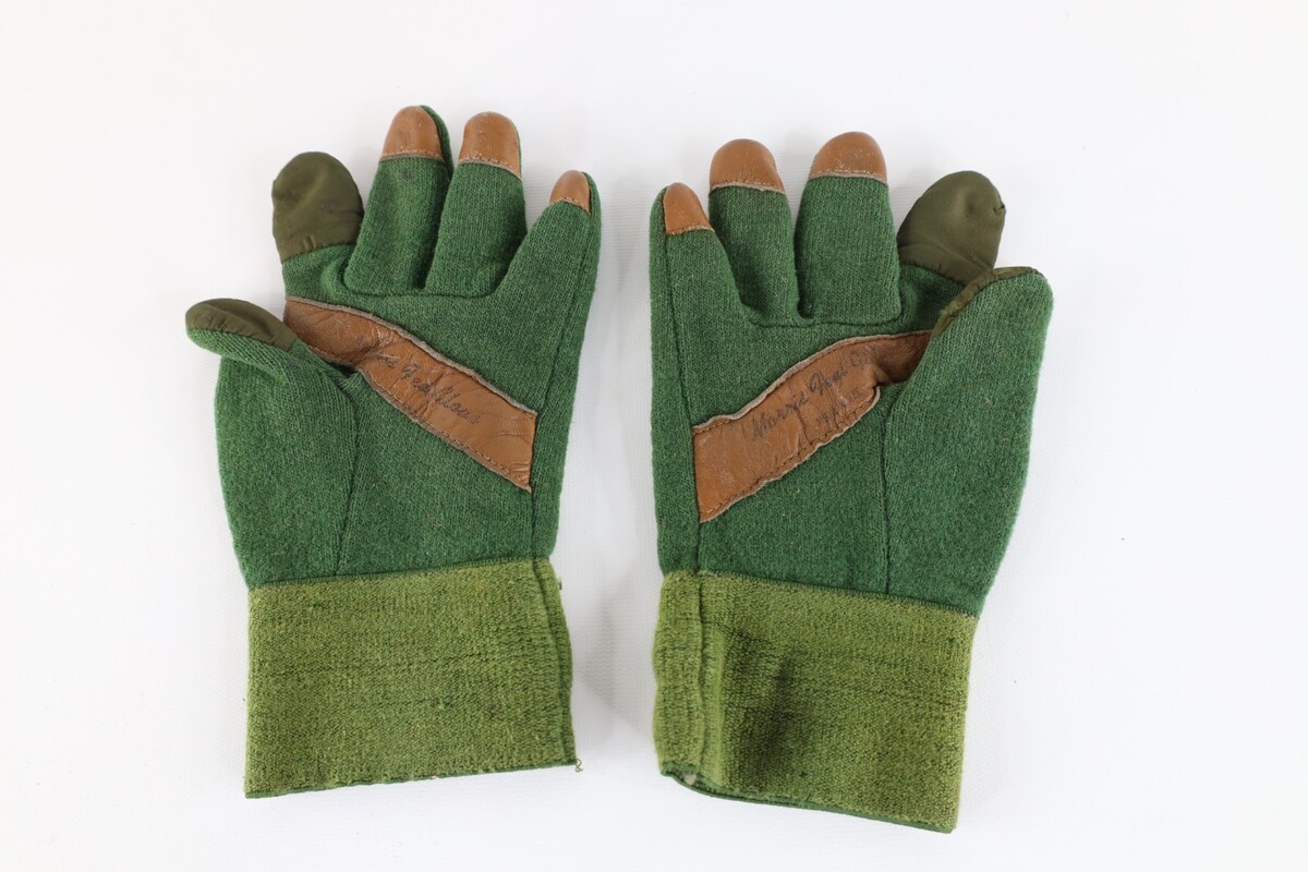 Vtg 70s Morris Feel Gloves Distressed Wool Leather Hunting Gloves Green Medium