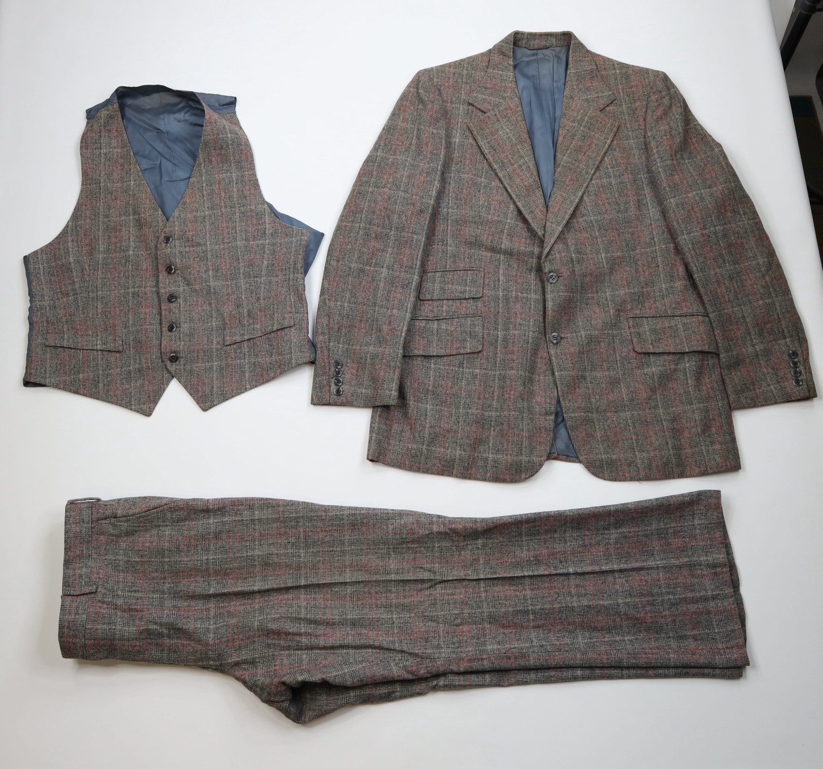 - Vtg 70s Pierre Cardin Mens 44R 3 Piece Wool Tweed Suit Wedding Houndstooth Plaid