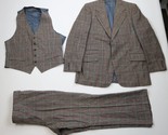 Vtg 70s Pierre Cardin Mens 44R 3 Piece Wool Tweed Suit Wedding Houndstooth Plaid