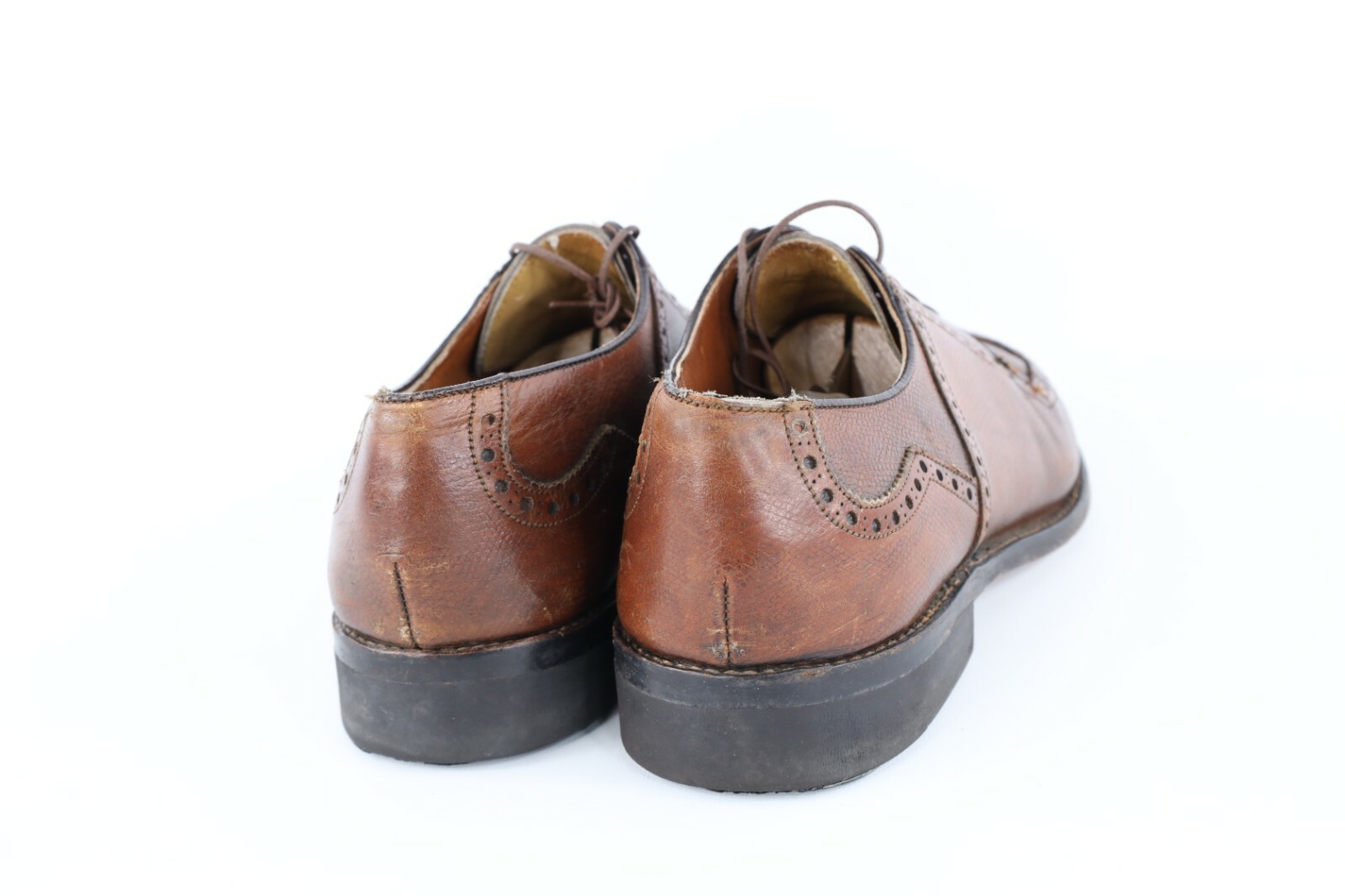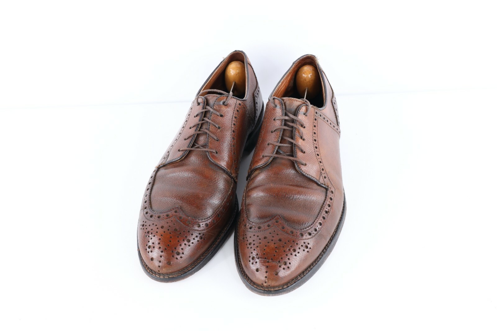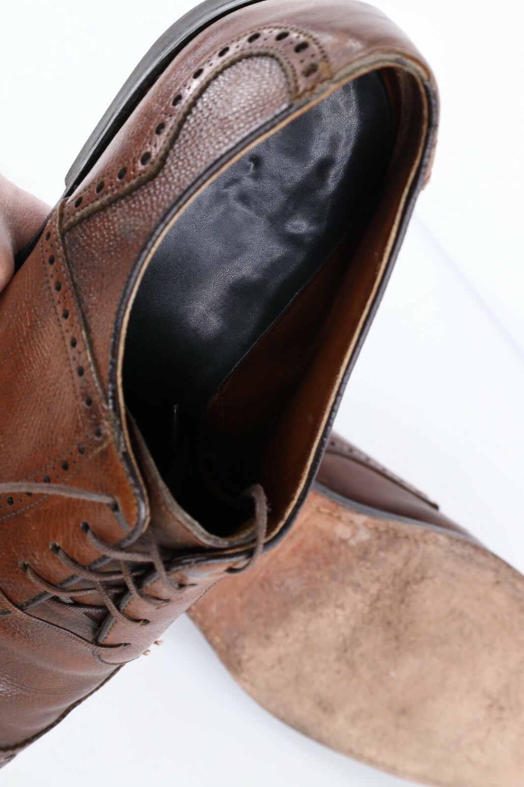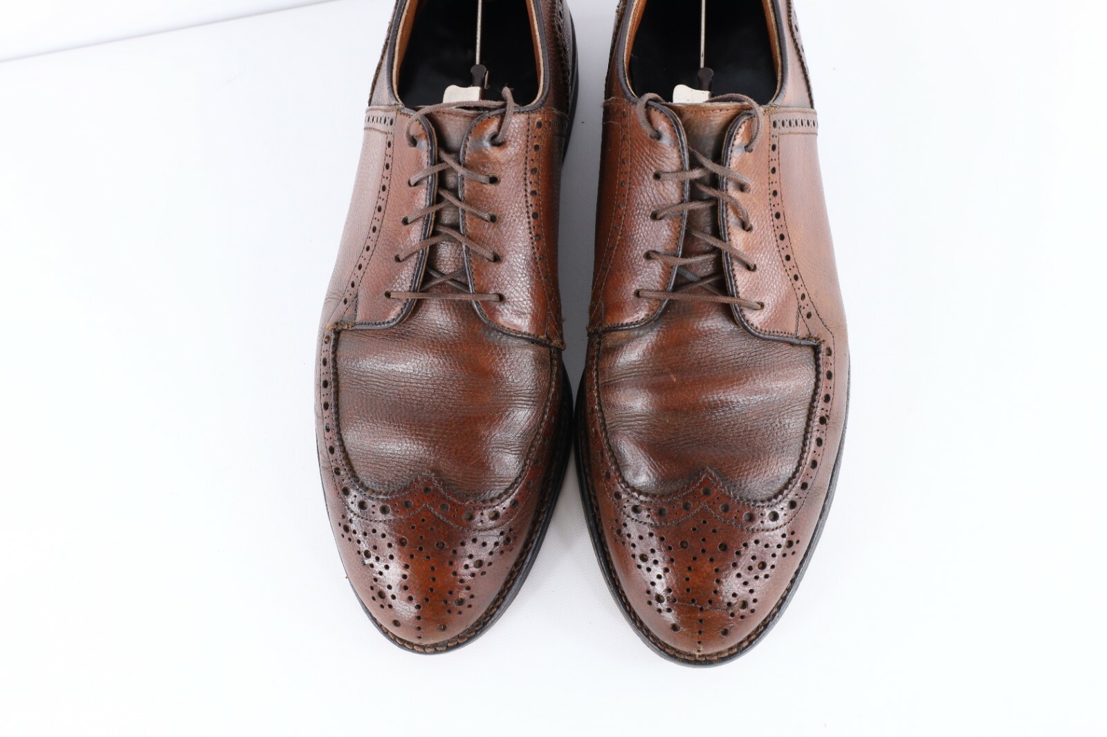 - Vtg 70s Rockabilly Mens 10.5 D Pebble Grain Leather Wingtip Dress Shoes Brown