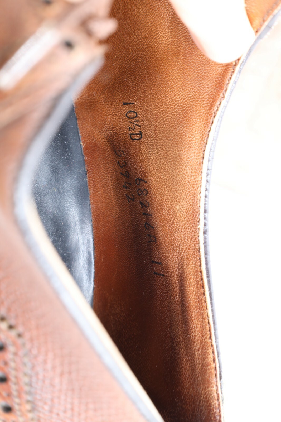 Vtg 70s Rockabilly Mens 10.5 D Pebble Grain Leather Wingtip Dress Shoes Brown