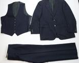 Vtg 70s Streetwear Mens 44R Distressed 3 Piece Pinstriped Knit Suit Wedding Blue