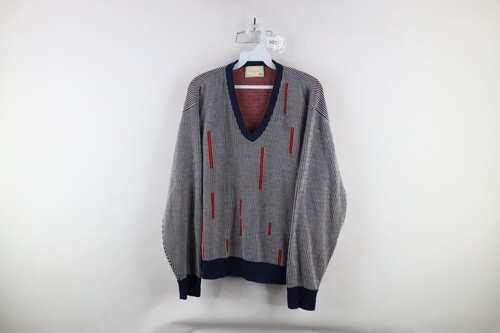 - Vtg 70s Streetwear Mens Medium Geometric Striped Ribbed Knit V-Neck Sweater USA