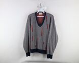 Vtg 70s Streetwear Mens Medium Geometric Striped Ribbed Knit V-Neck Sweater USA