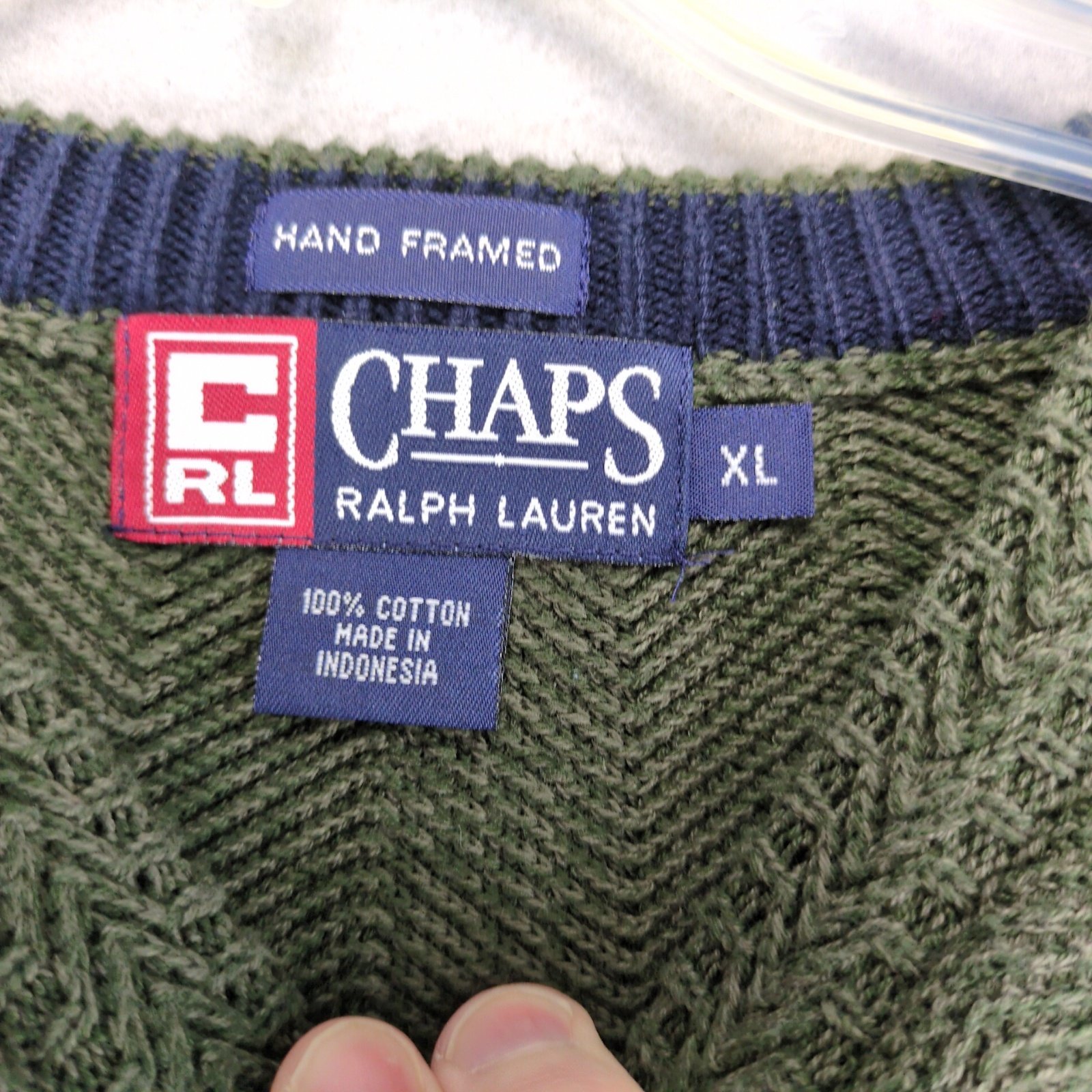 - Vtg 80s Chaps Ralph Lauren Pullover Green Knit Sweater Mens XL Hand Framed Logo