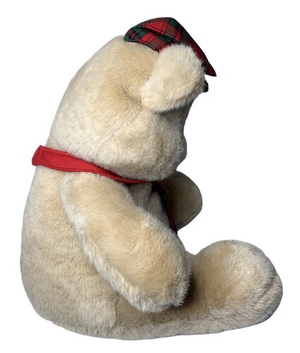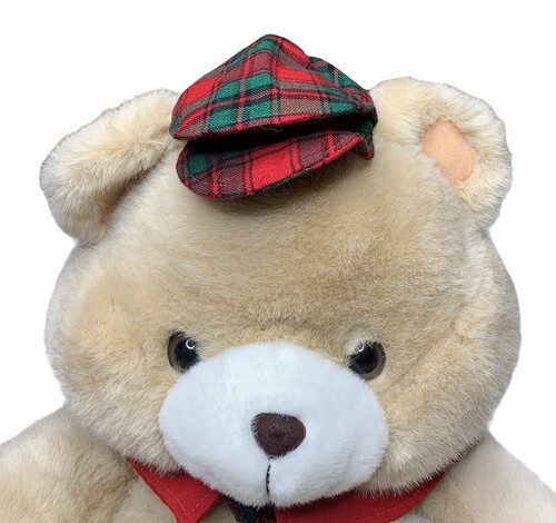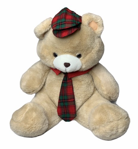 - Vtg 80s Cuddle Wit Brown 1985 Christmas Teddy Bear with Plaid Hat and Tie 22"