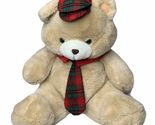 Vtg 80s Cuddle Wit Brown 1985 Christmas Teddy Bear with Plaid Hat and Tie 22"