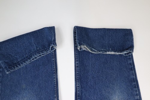 Cuffs have threadbare spots on the back. Blemishes front and back. Distressed and faded. USA made. Tagged size 38x30. Measures and fits size 38x29 because the inseam was hemmed. Tagged 38x30, inseam hemmed and fits size 38x29. Check measurements. Inseam hemmed. Actual size is different than tagged size.