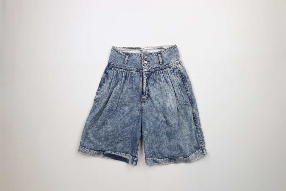 - Vtg 80s Streetwear Womens 9/10 Distressed Acid Wash High Waisted Denim Shorts