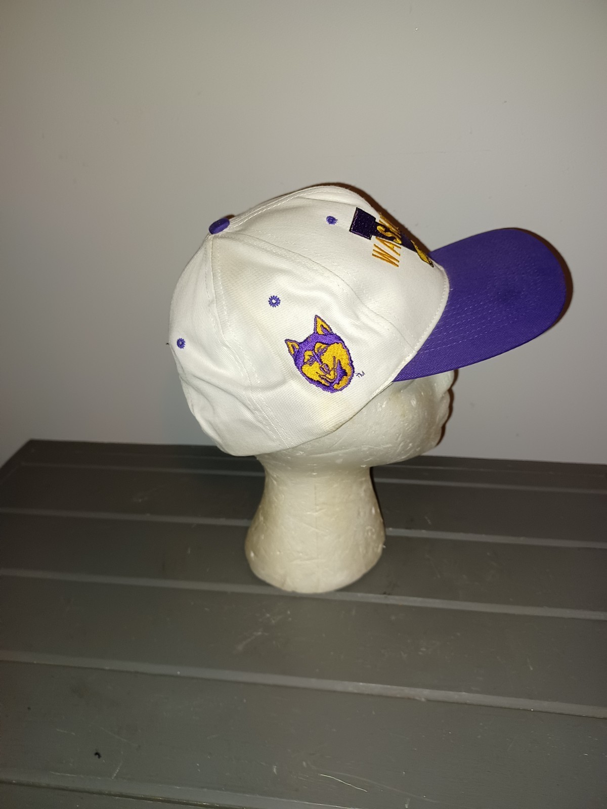 - Vtg 90's Washington Huskies Head Start Snapback Cap Hat NOS Purple/White Script