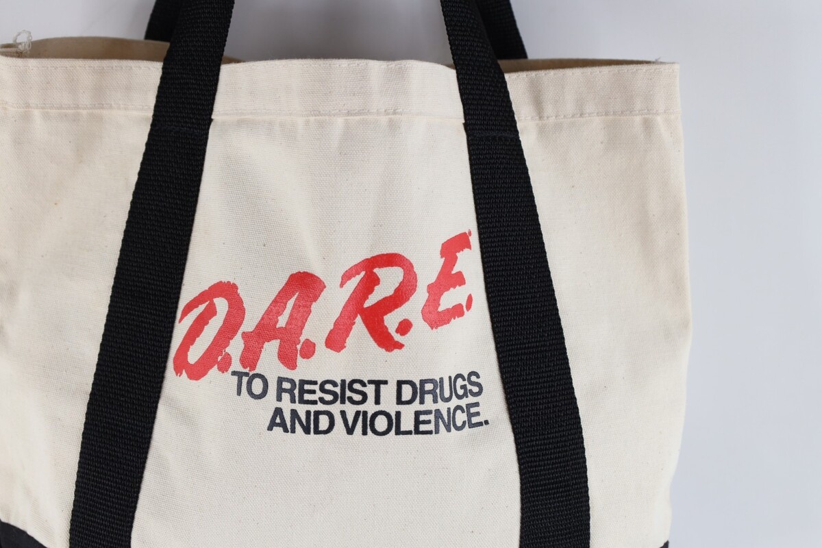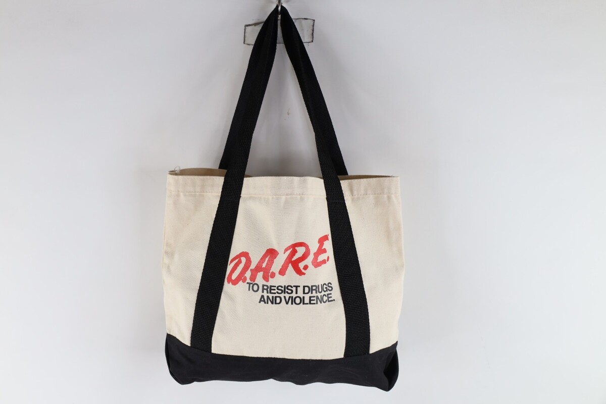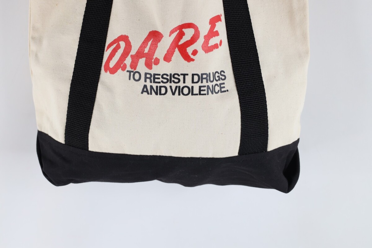 - Vtg 90s DARE To Resist Drugs and Violence Handled Canvas Tote Bag Carry On Beige