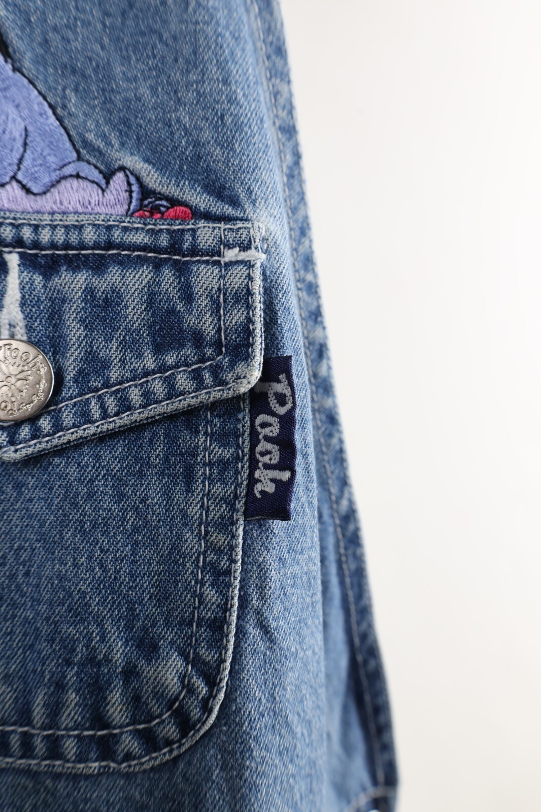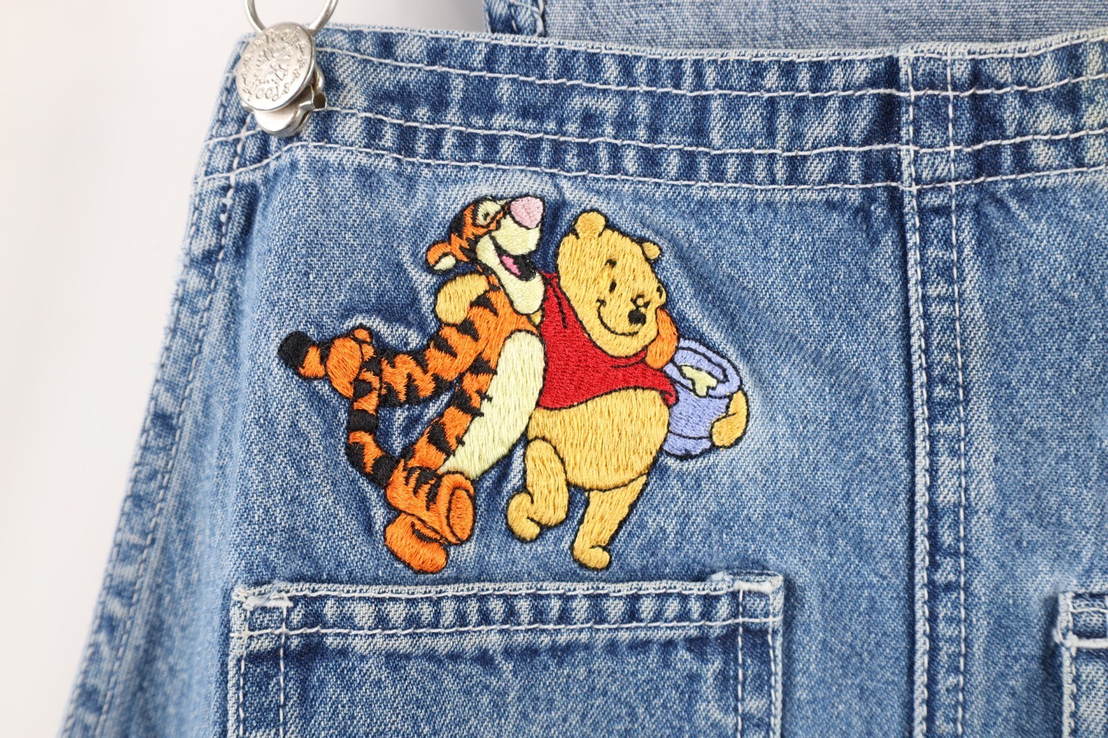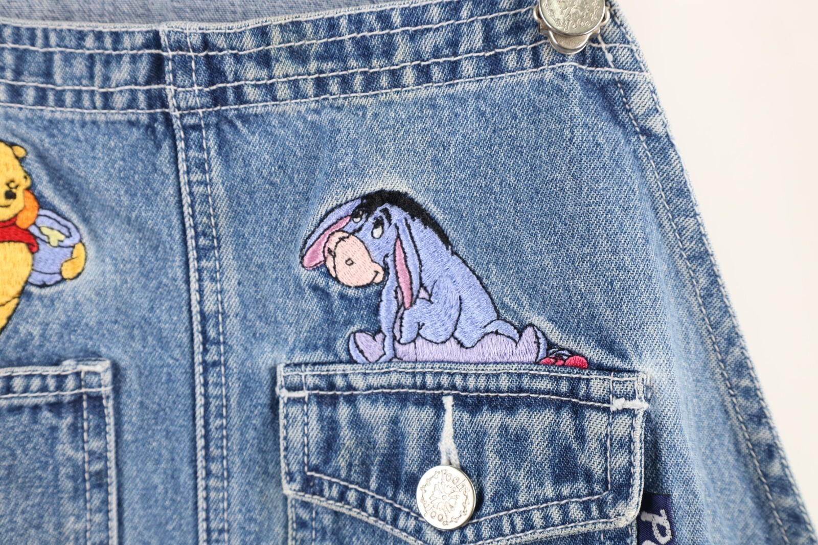 - Vtg 90s Disney Womens 22W Distressed Winnie the Pooh Denim Overalls Shortalls