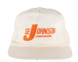 - Vtg 90s Distressed SE Johnson Companies Spell Out Roped Leather Strapback Hat