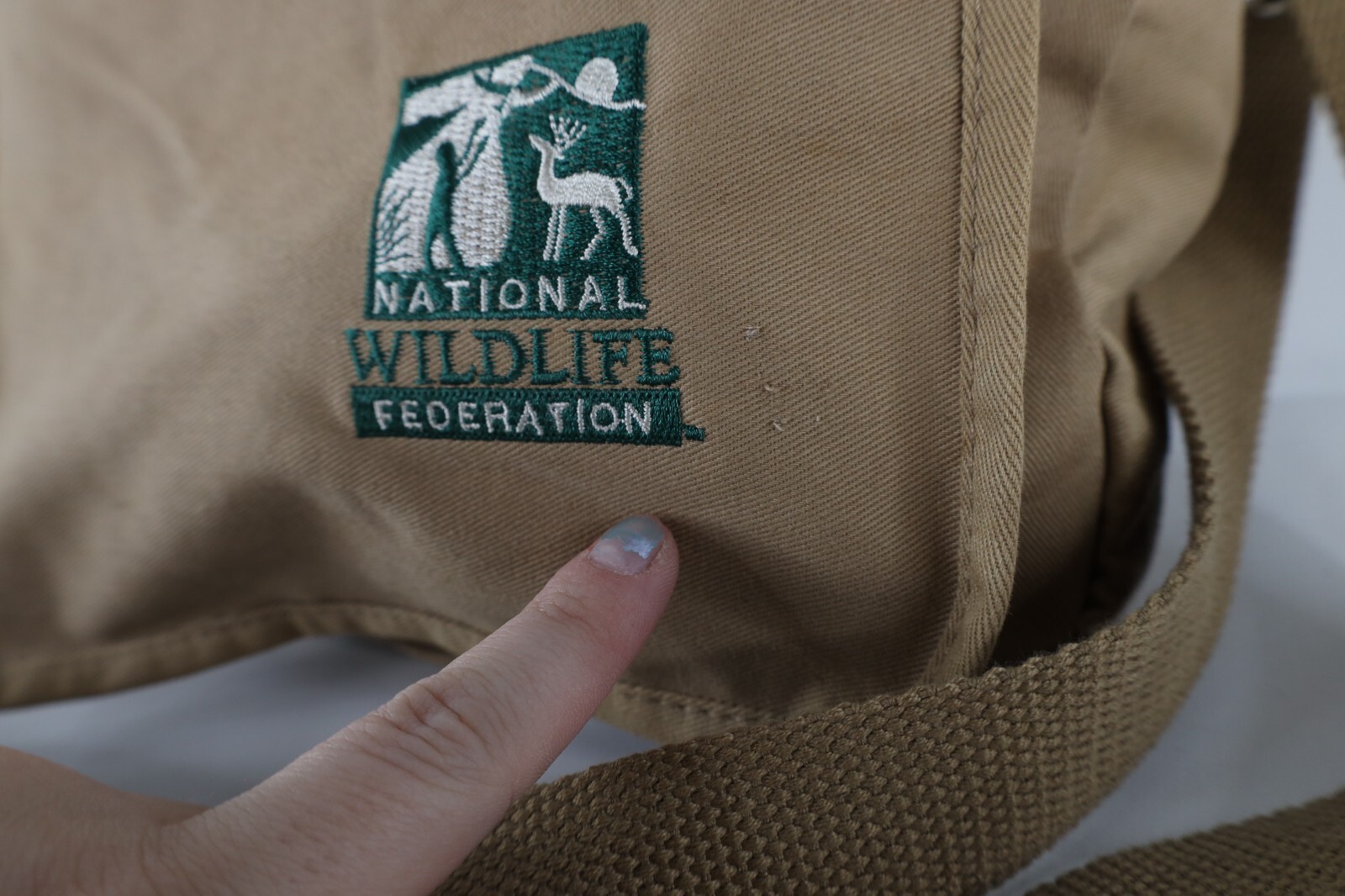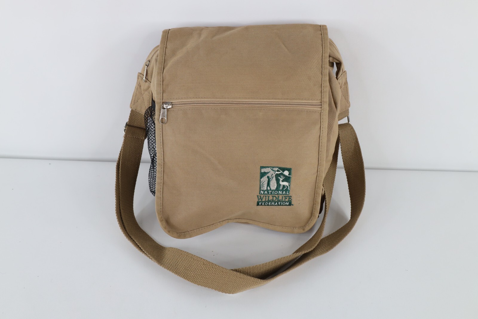 - Vtg 90s Distressed Spell Out National Wildlife Federation Crossbody Bag Beige