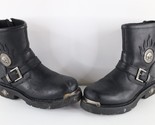 - Vtg 90s Harley Davidson Mens 8.5 Distressed Fire Flames Skull Moto Boots Black