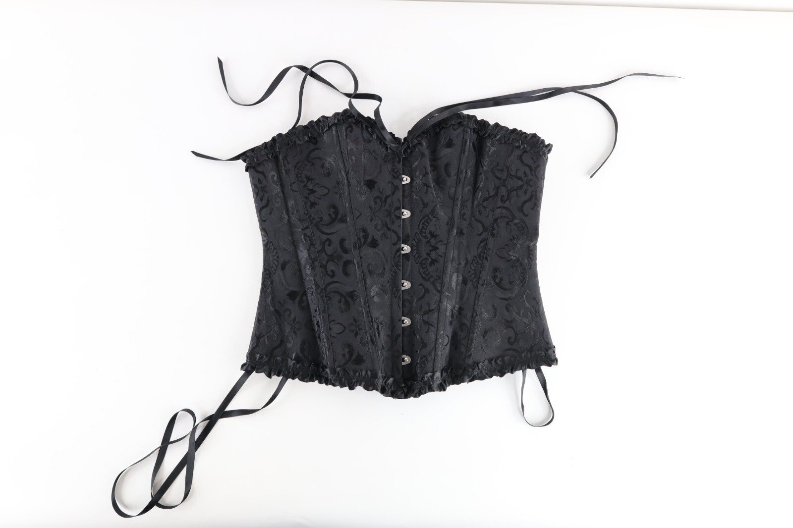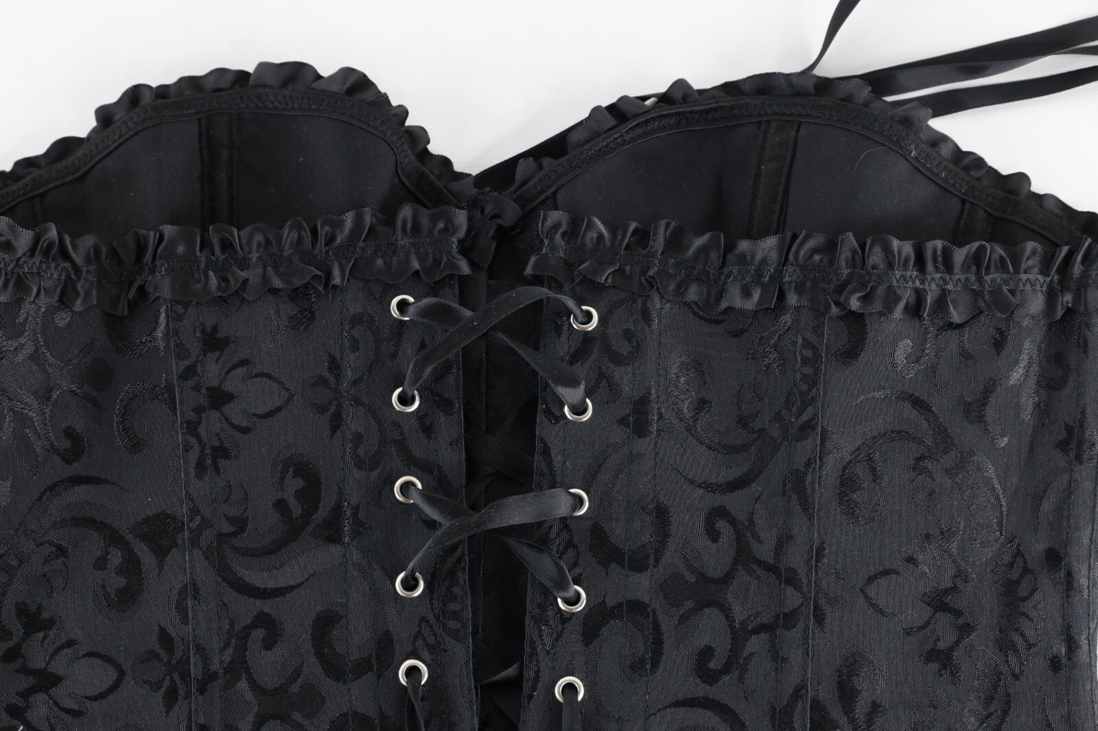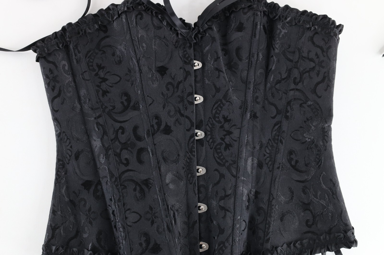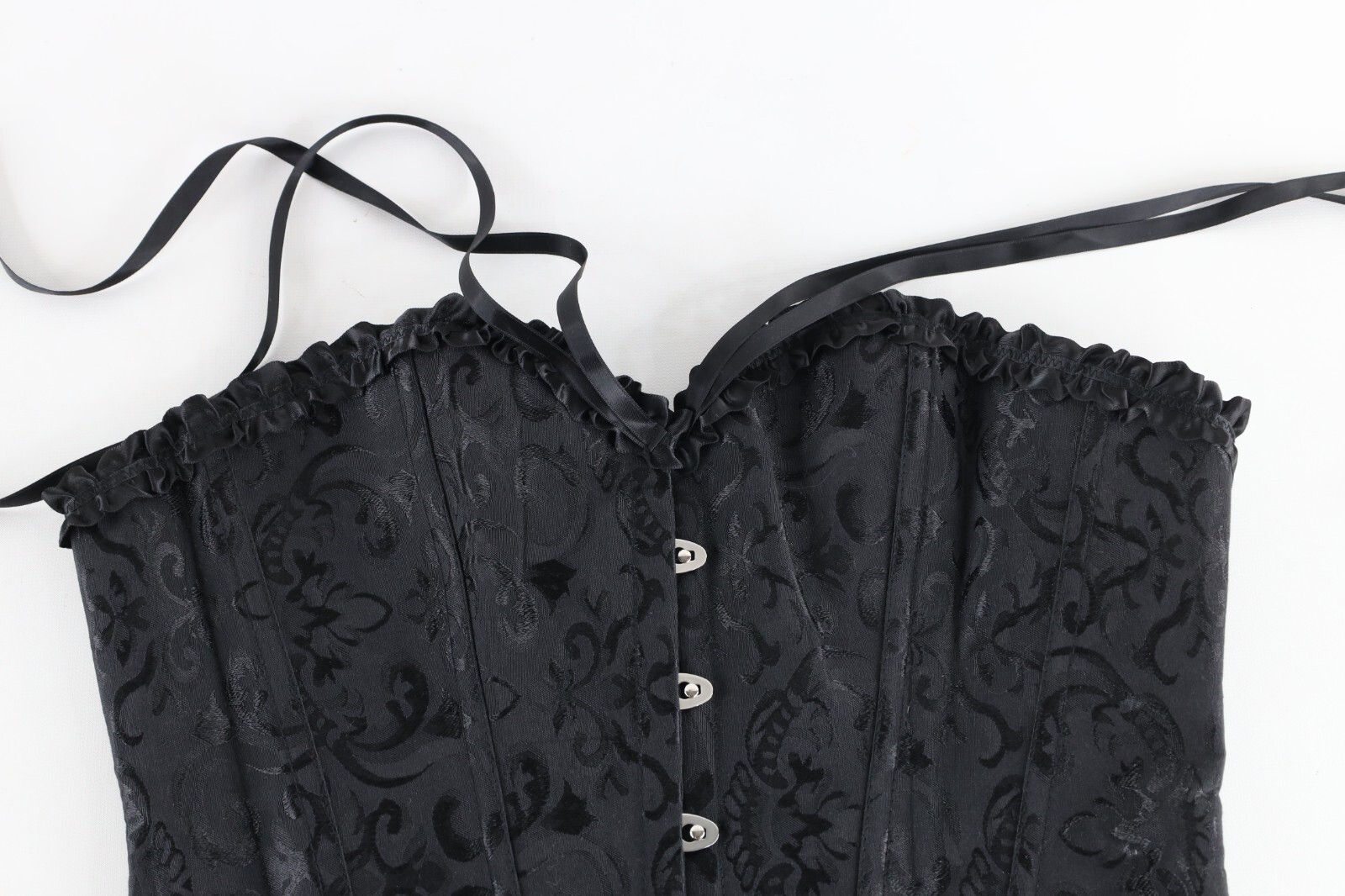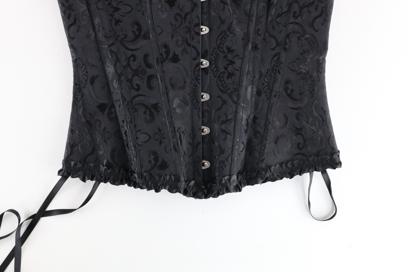 - Vtg 90s Rockabilly Goth Gothic Womens XL Ruffled Satin Jacquard Brocade Corset