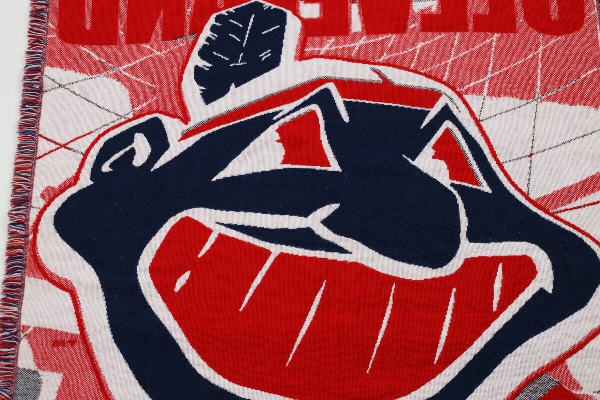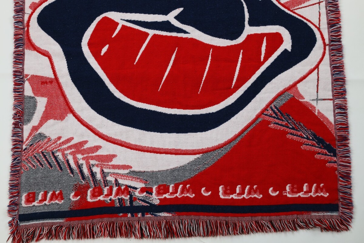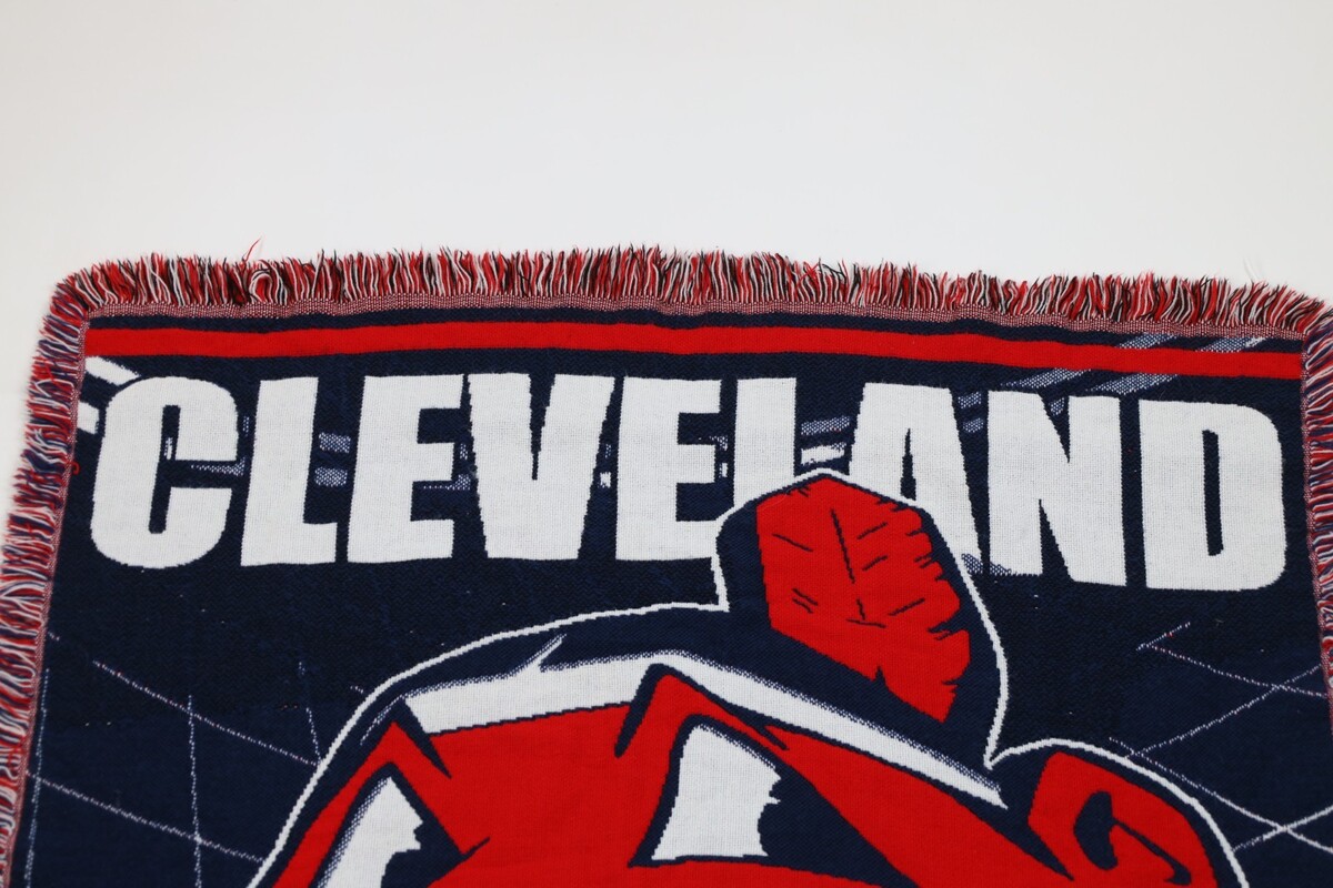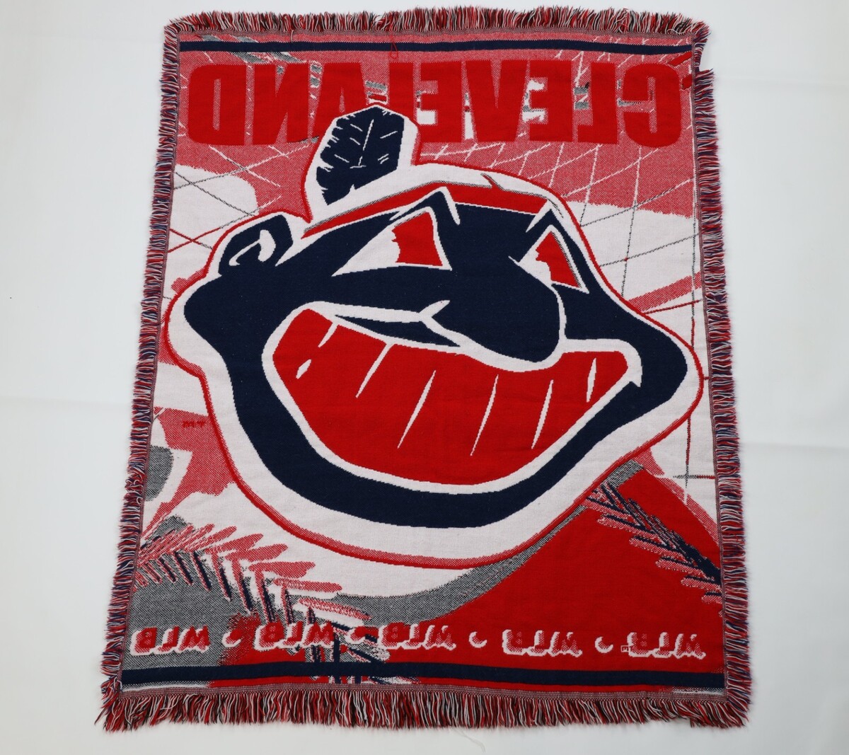 - Vtg 90s Spell Out Chief Wahoo Cleveland Indians Baseball Fringed Blanket 44"x55"