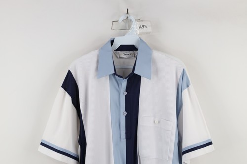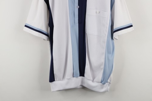 - Vtg 90s Streetwear Mens Medium Ribbed Striped Color Block Pullover Polo Shirt
