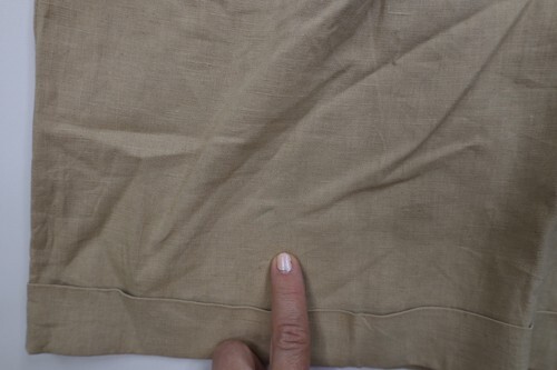 Stains throughout. Color faded. Pilling, fabric pulls. Loose threads waist, buttons