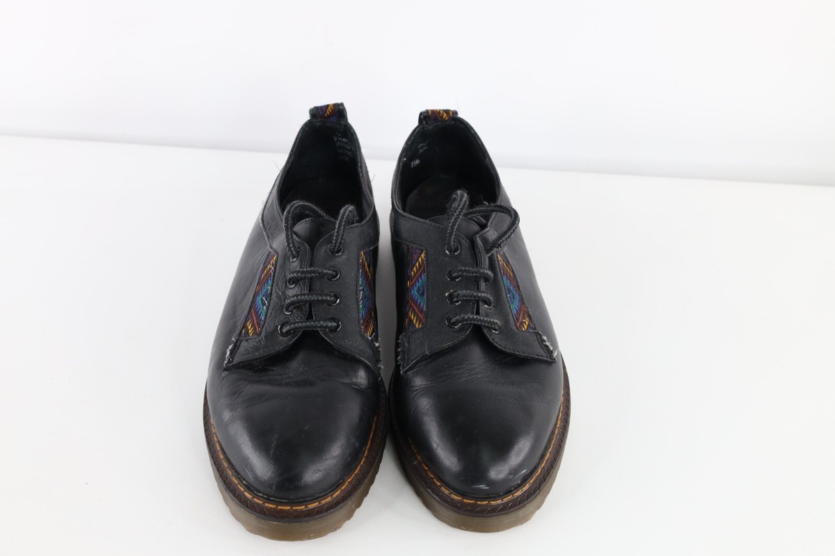 Vtg 90s Streetwear Womens 7.5 Chunky Leather Southwestern Oxford Shoes Black