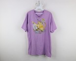 Vtg 90s Streetwear Womens Large Faded Cat Kitten Flower Garden T-Shirt Purple
