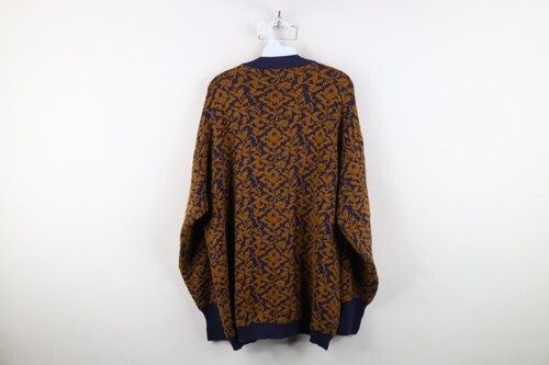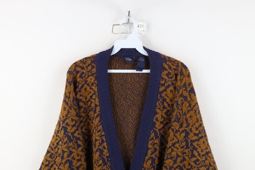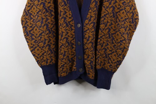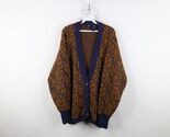 Vtg 90s Streetwear Womens Petite Medium Abstract Flower Knit Cardigan Sweater