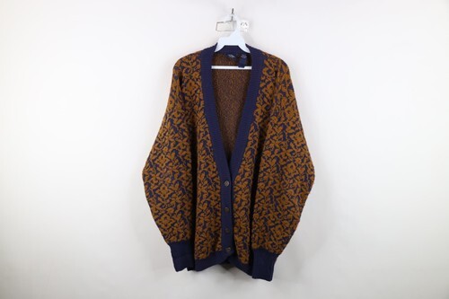 - Vtg 90s Streetwear Womens Petite Medium Abstract Flower Knit Cardigan Sweater