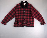 Vtg 90s Tally-Ho Buffalo Plaid Fleece Jacket Women's L Faux Fur Collar Button Up