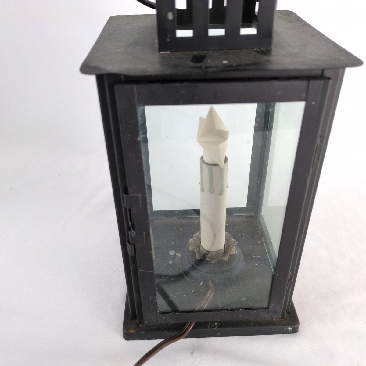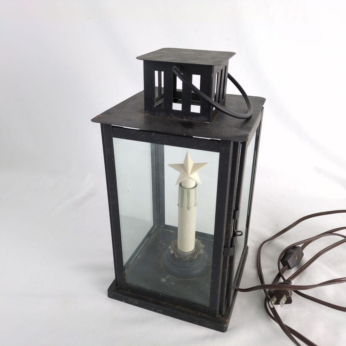 Add a touch of vintage charm to your home with this Bel Air Lighting star candle lantern! This unique piece features a black metal frame with 4 glass panels, one side that opens, an electric powered candle with a star shape top and a handle on the top for hanging.