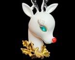 - Vtg ART Arthur Pepper White Enamel Rudolph Jeweled Eye Brooch 1950s Christmas