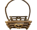 - Vtg Adirondack Style Twig Basket w/ Heart Wreath Primitive Rustic Country Decor