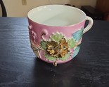 - Vtg Antique Pink Porcelain Cup Mug Raised Floral Relief Gold Gilt Numbered #32