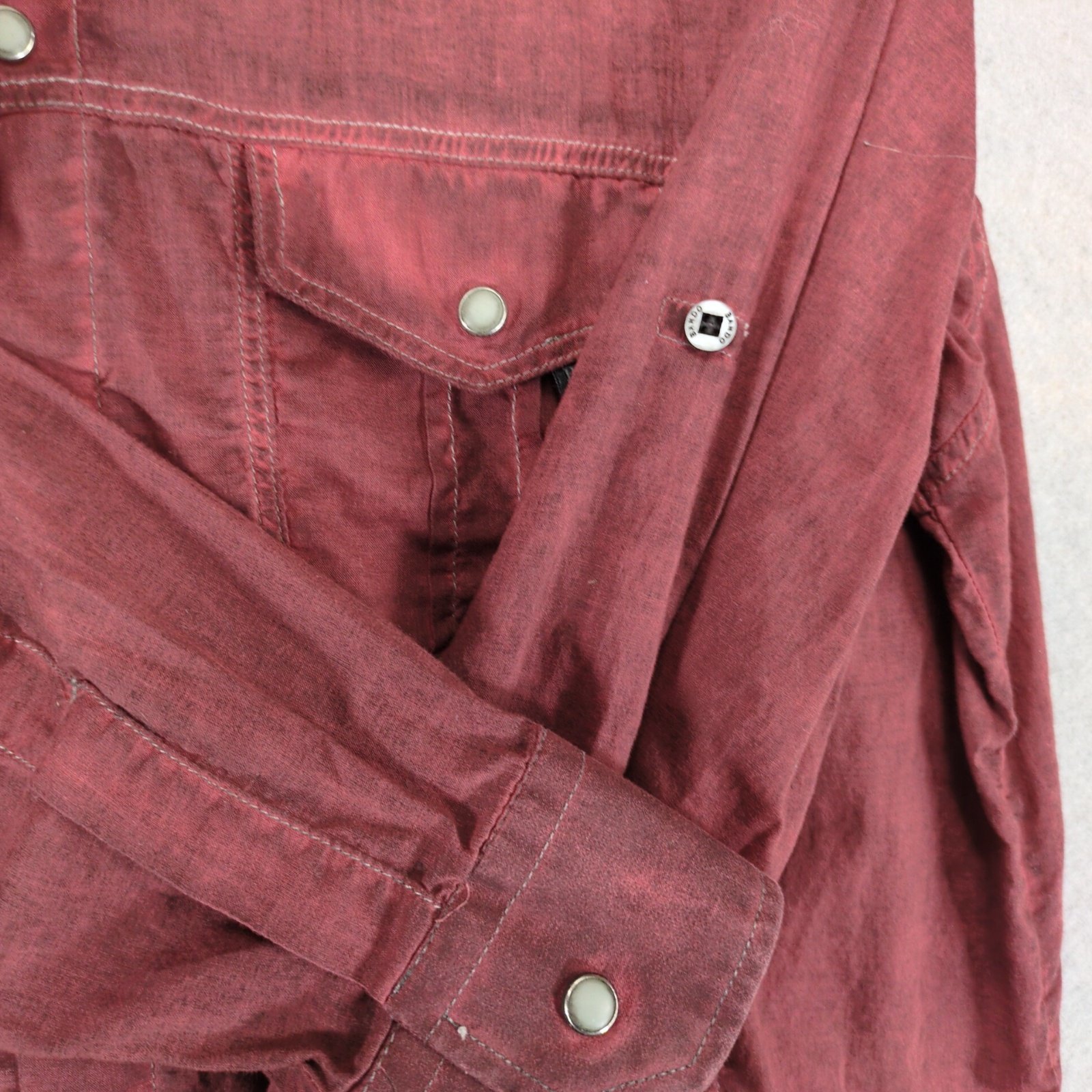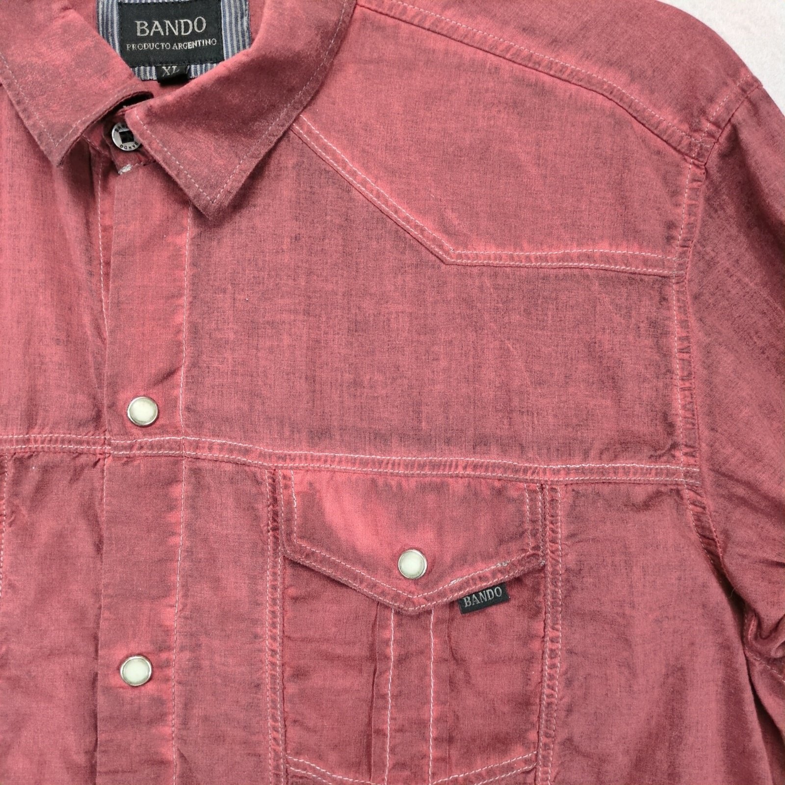 - Vtg Bando Argentina Burgundy Pearl Snap Shirt Men's XL Roll-Tab Long Slv Western