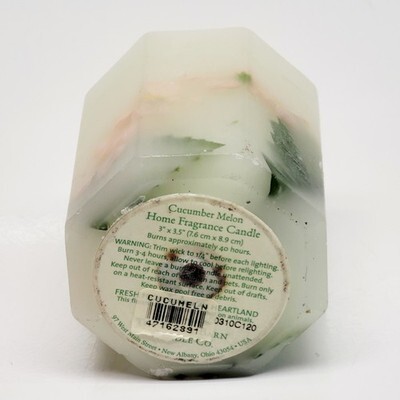 - Vtg Bath & Body Works White Barn Cucumber Melon Flower Filled 3" Candle