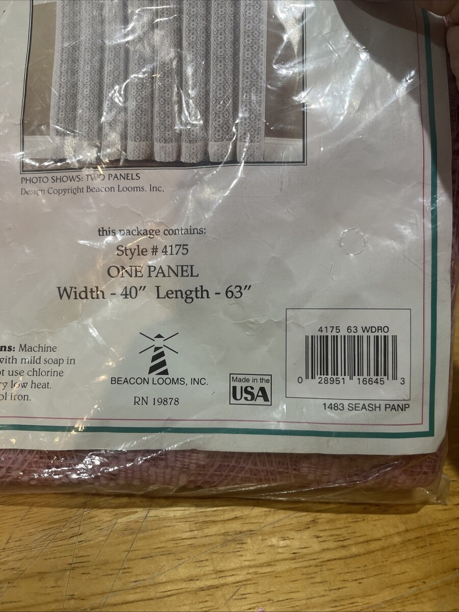 - Vtg Beacon Looms Window Lace Panel Curtain Pink Seashells Style 40x63" USA