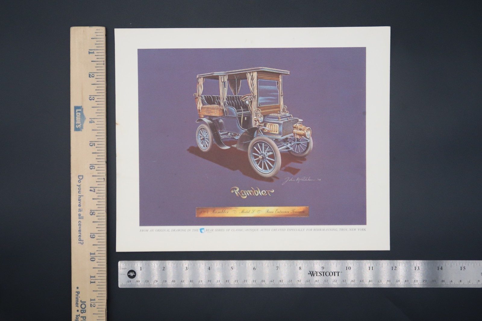 - Vtg Bear Series Print Classic Autos Behr-Manning Troy NY 1904 Rambler Tonneau
