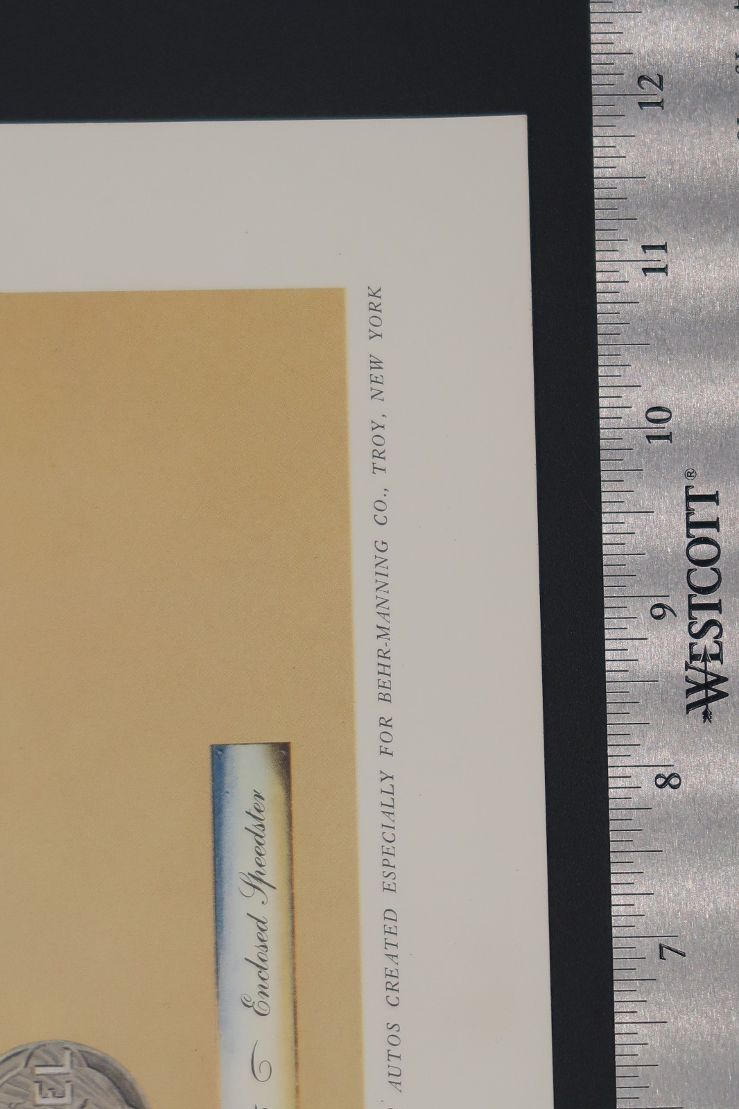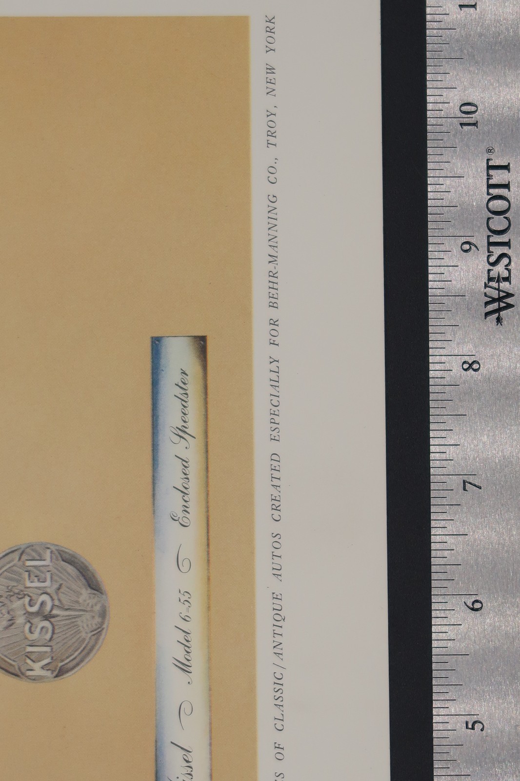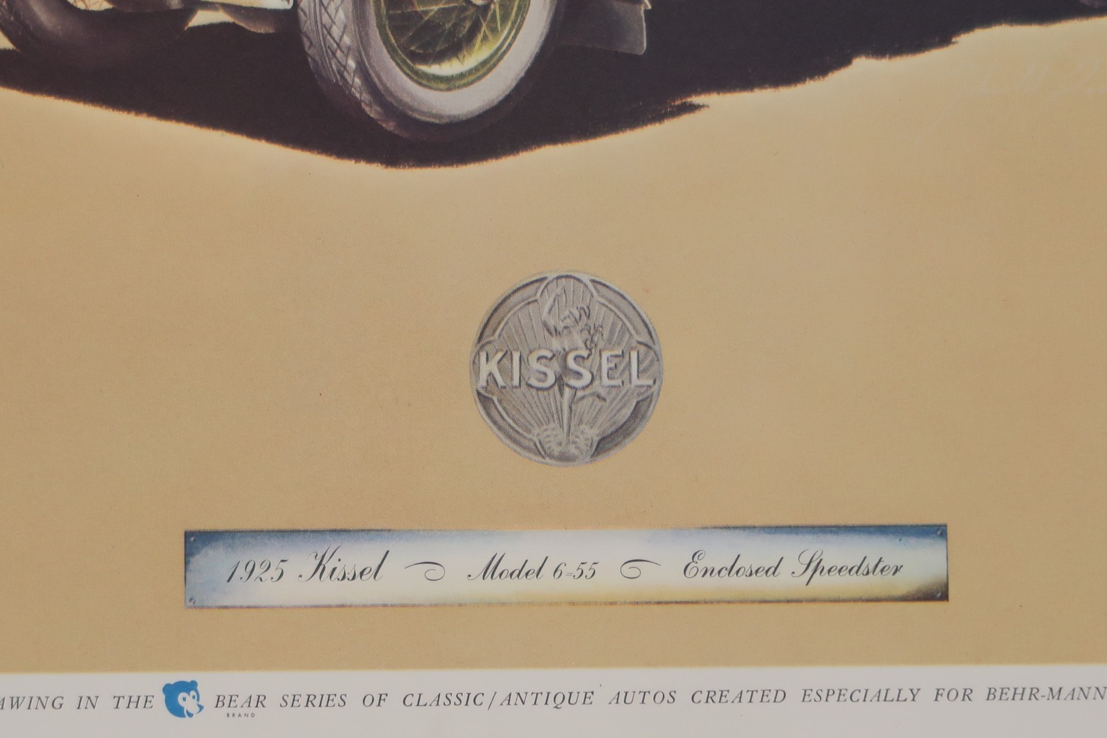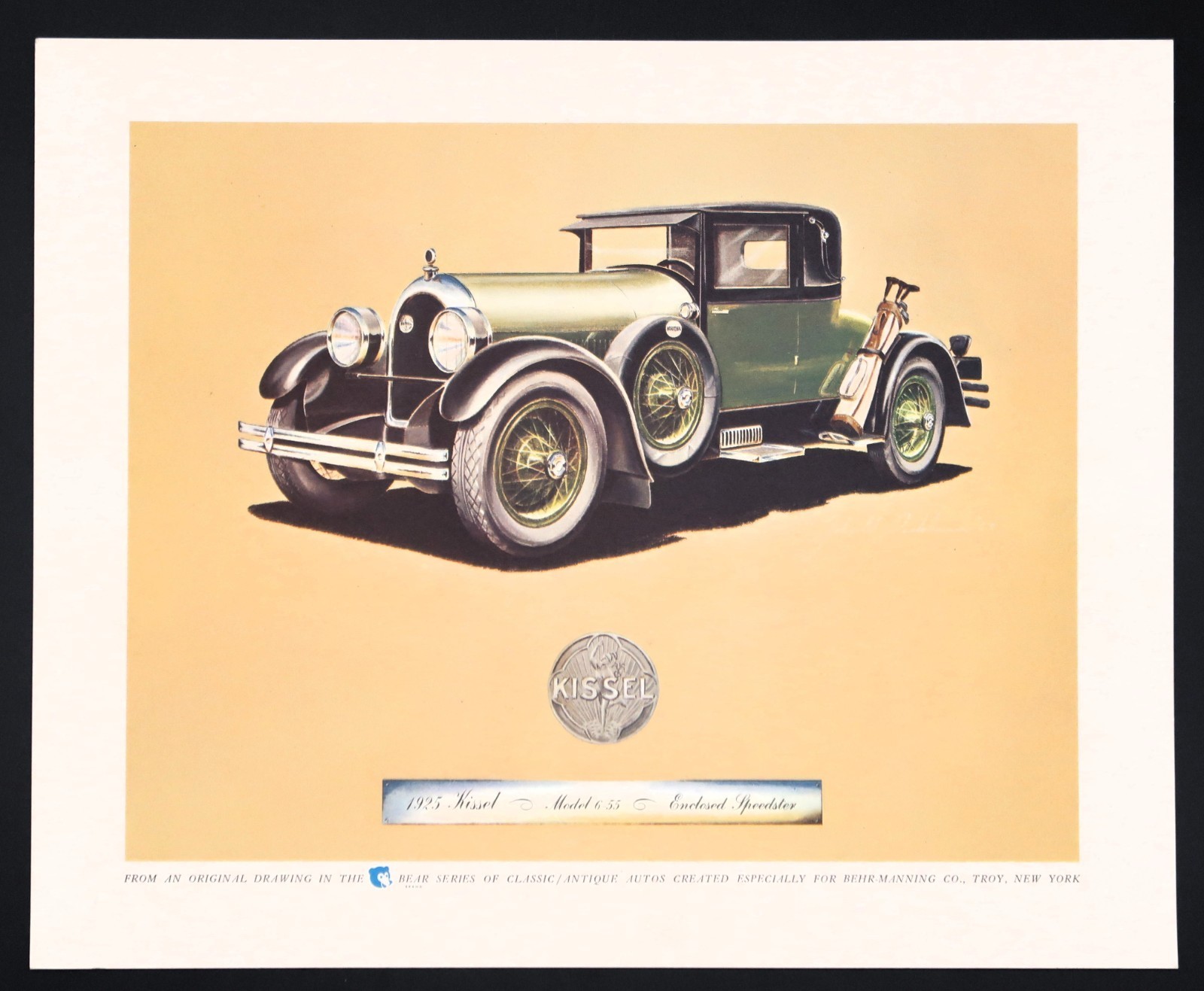 - Vtg Bear Series Print Classic Autos Behr-Manning Troy NY 1928 Kissel Roadster