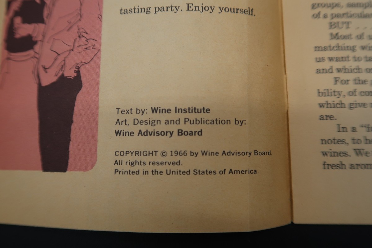 - Vtg Booklet Wine Tasting Party Wine Advisory Board San Francisco CA '66 Ephemera