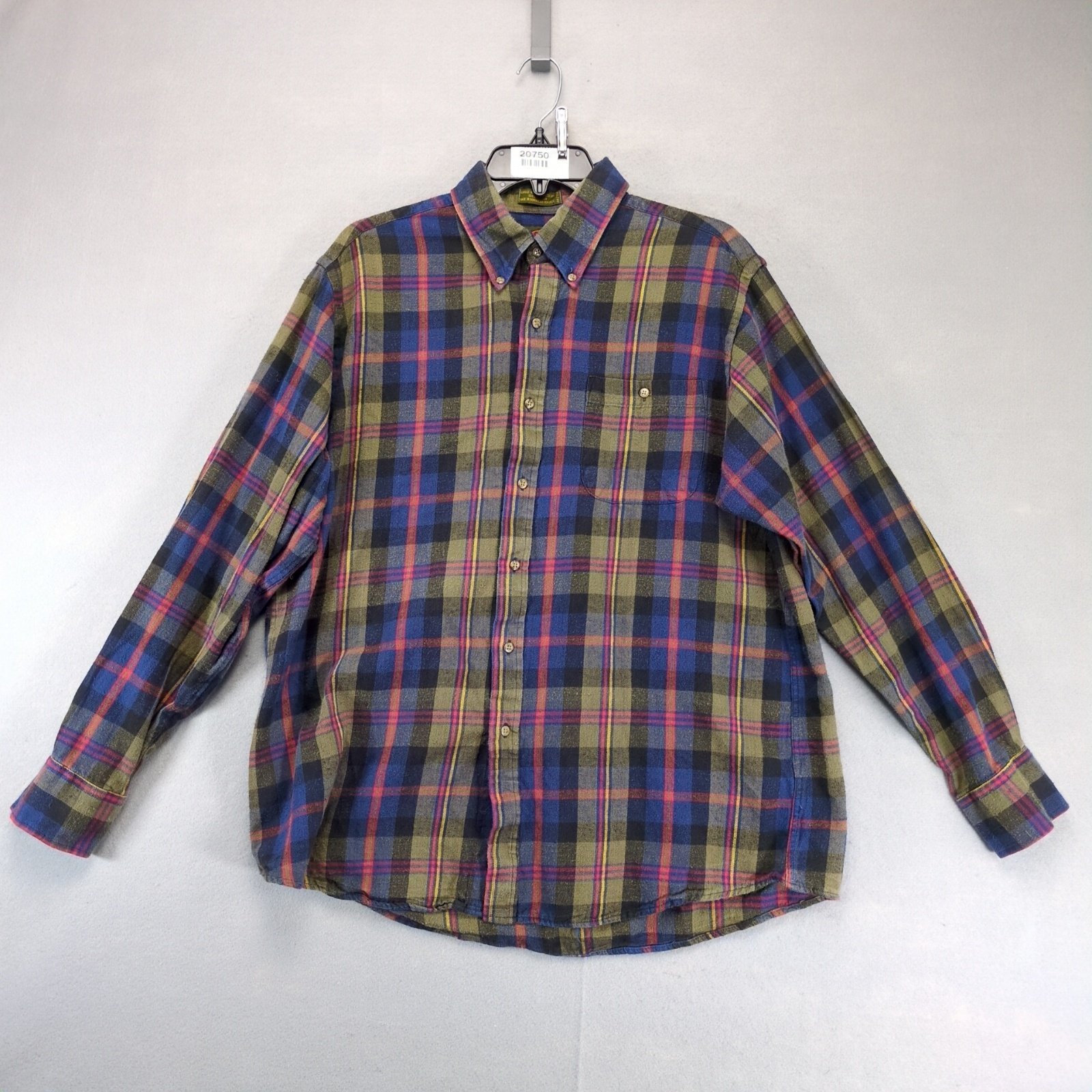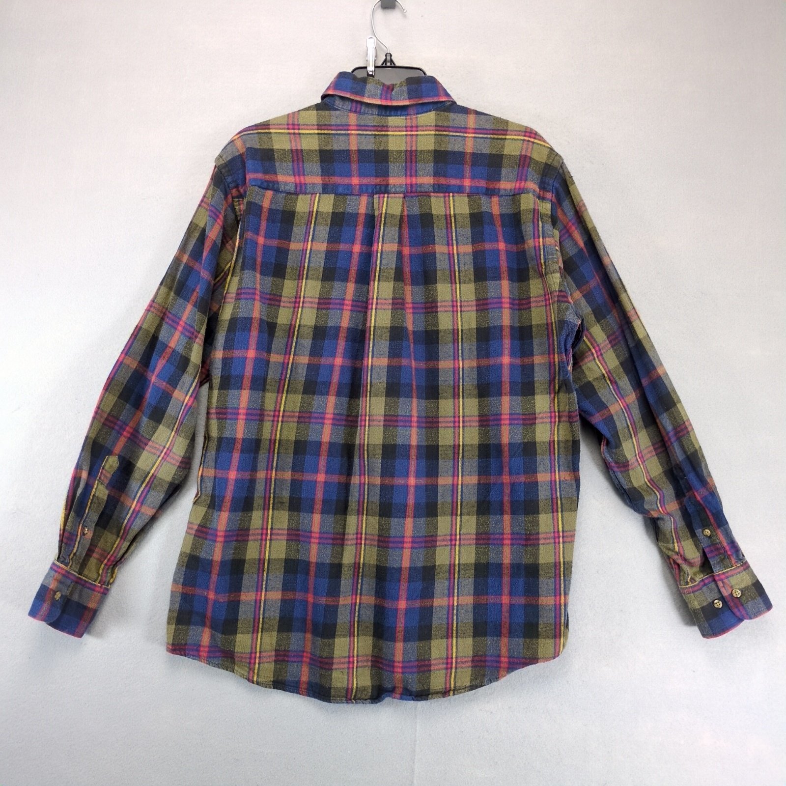 - Vtg Boston Traders Plaid Flannel Button Down Shirt Men's L Long Slv Navy Olive