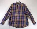 Vtg Boston Traders Plaid Flannel Button Down Shirt Men's L Long Slv Navy Olive