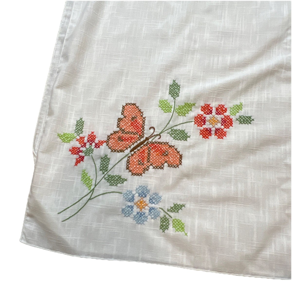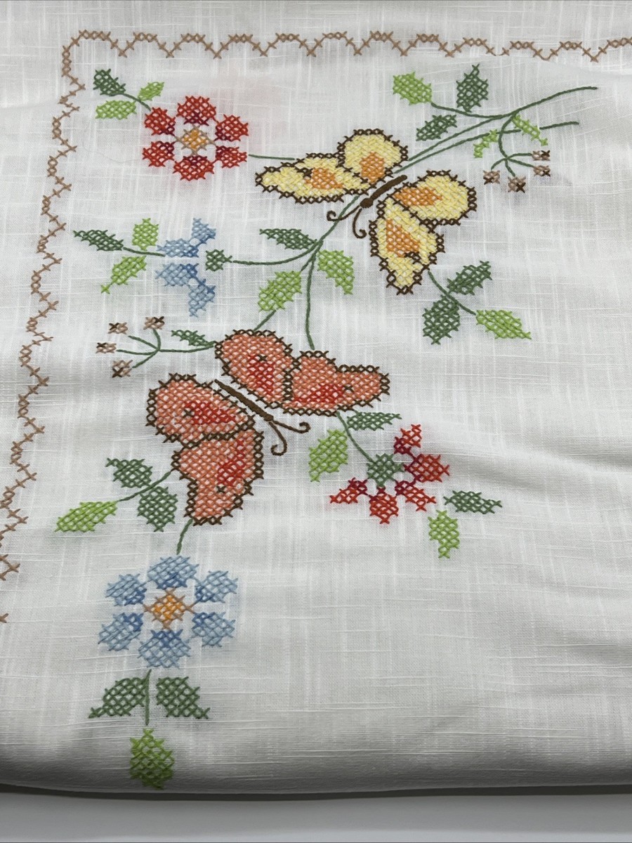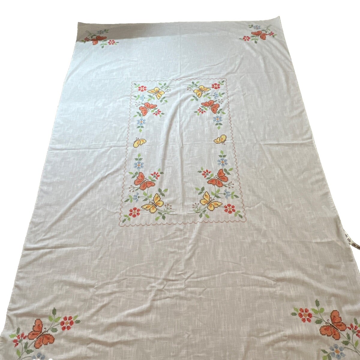 - Vtg Bucilla 1991 Tablecloth Cross Stitch Butterfly Serenade 59x87 Completed