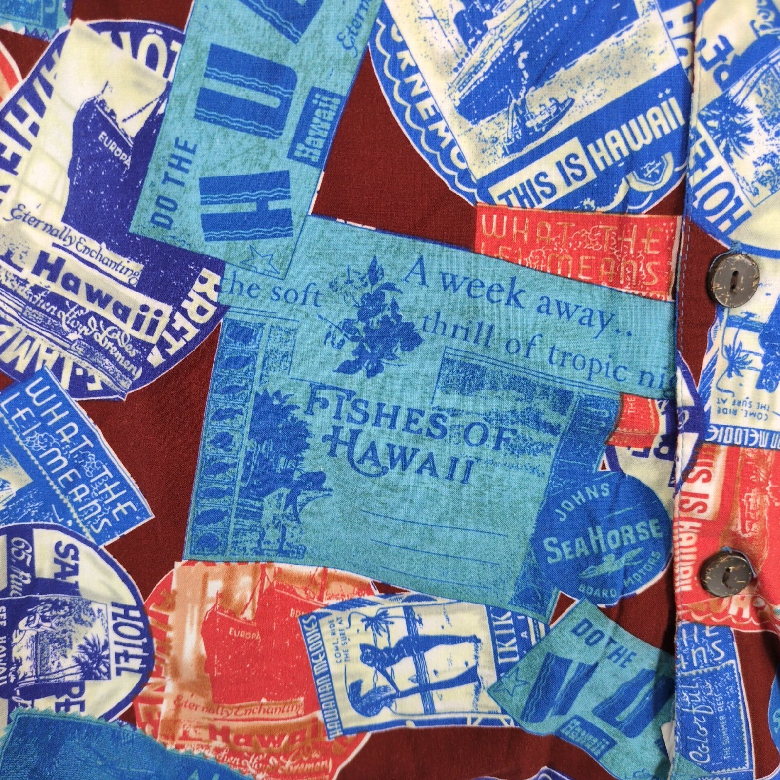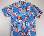 Vtg Cactus Black Label Hawaiian Shirt Men's XXL Button Up Blue Tropical Postcard