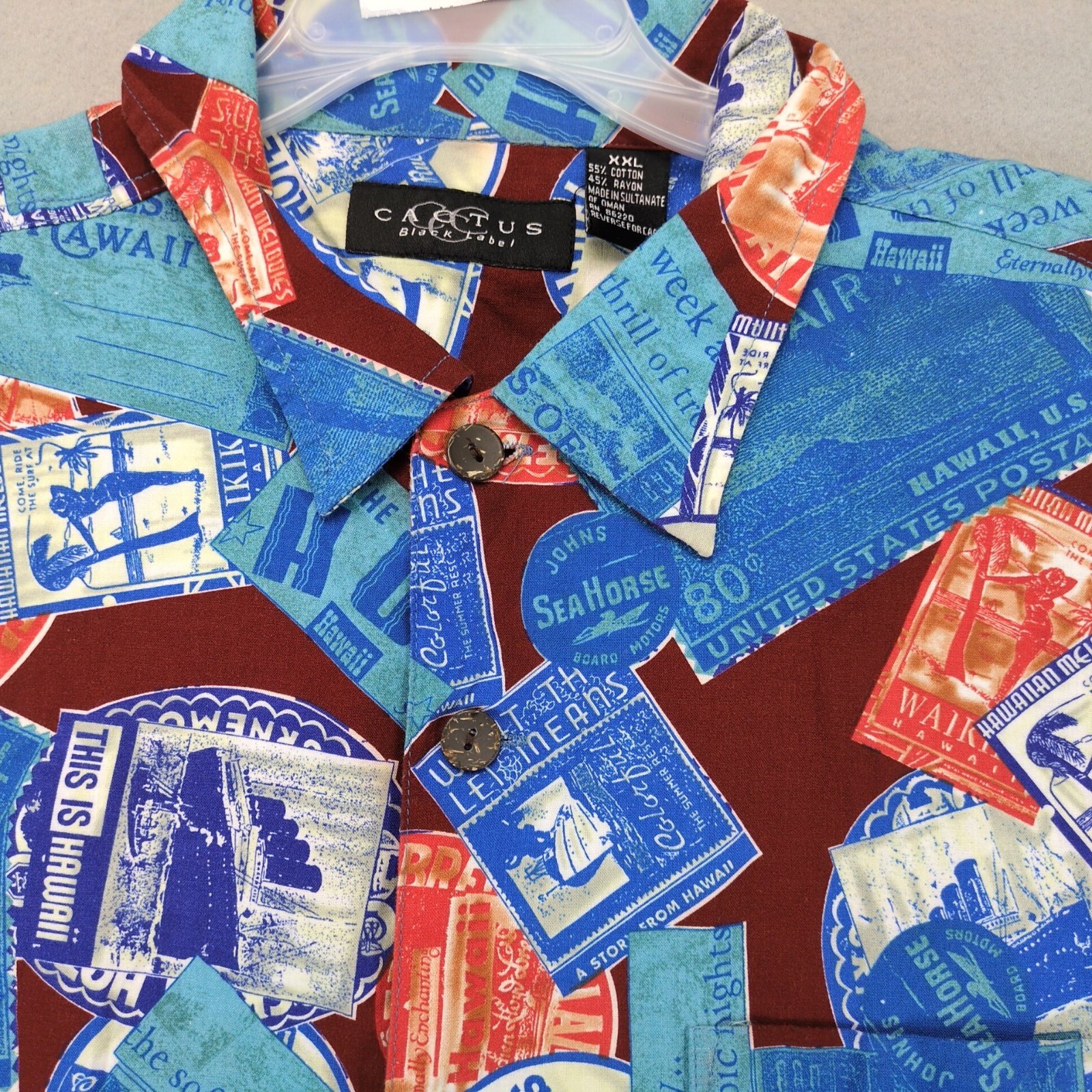 - Vtg Cactus Black Label Hawaiian Shirt Men's XXL Button Up Blue Tropical Postcard