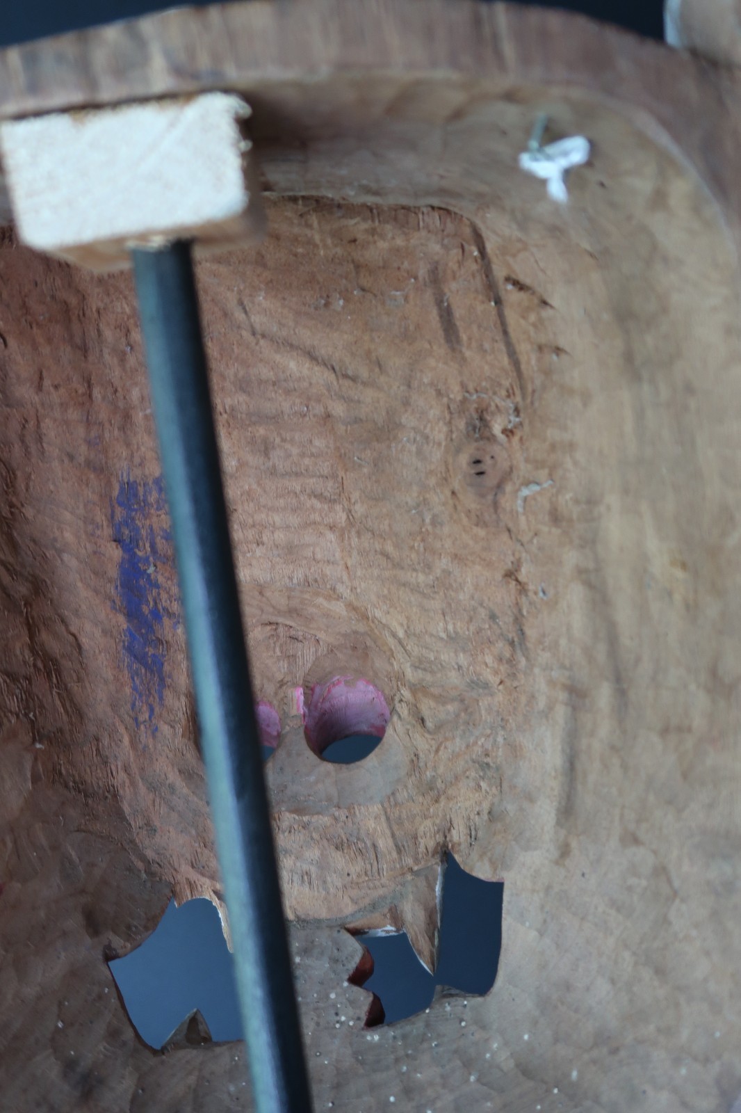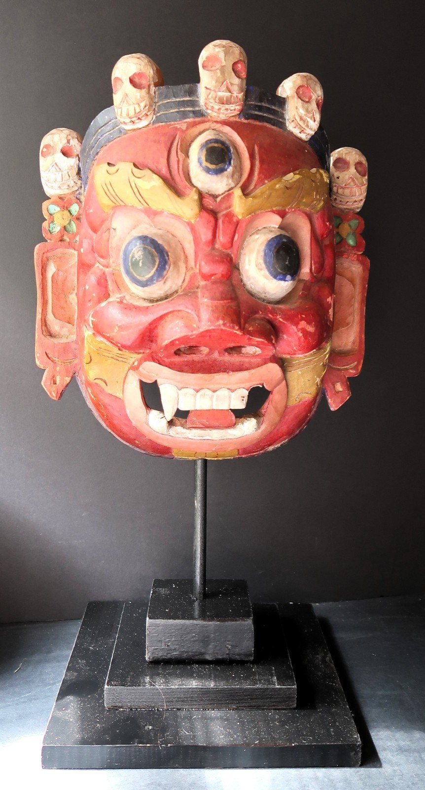 - Vtg Carved Wood Tibetan Buddhist Mahakala Red Mask Wall Decor w/ Original Stand