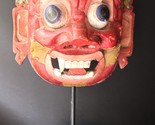 Vtg Carved Wood Tibetan Buddhist Mahakala Red Mask Wall Decor w/ Original Stand