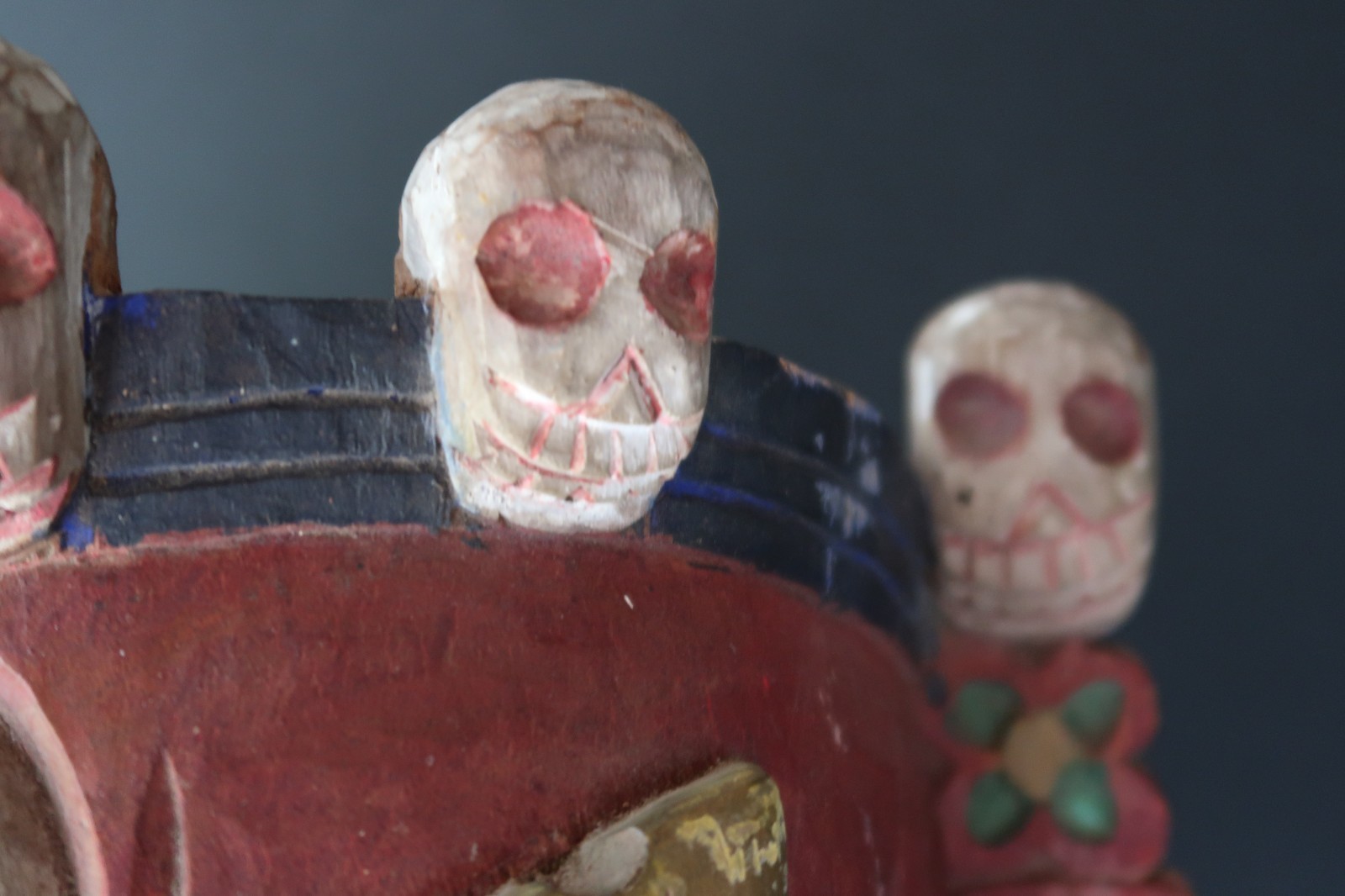 A nice heavy hand carved wood mask, light wear to the paint. One tooth is missing, could be crafted and replaced/glued. Wear and imperfections consistent with age and being handled. Please carefully examine all pictures before purchasing. The pictures are an important part of the description, and usually include important measurements. Items are in good pre-owned condition unless otherwise noted.
