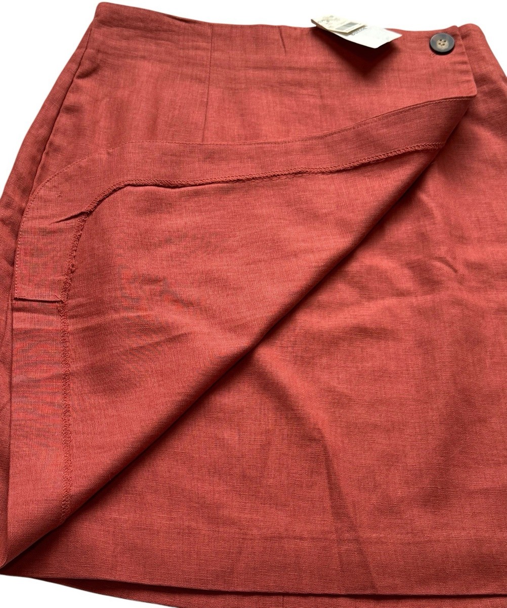 - Vtg Casual Corner Skirt Size 10 Rust Linen Blend Pencil Wrap Autumn Pencil New